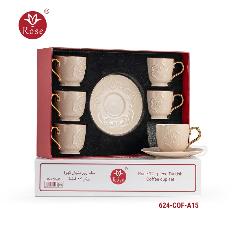• طقم استكانة شاي 12 قطعة "6 استكانات + 6 صحون"