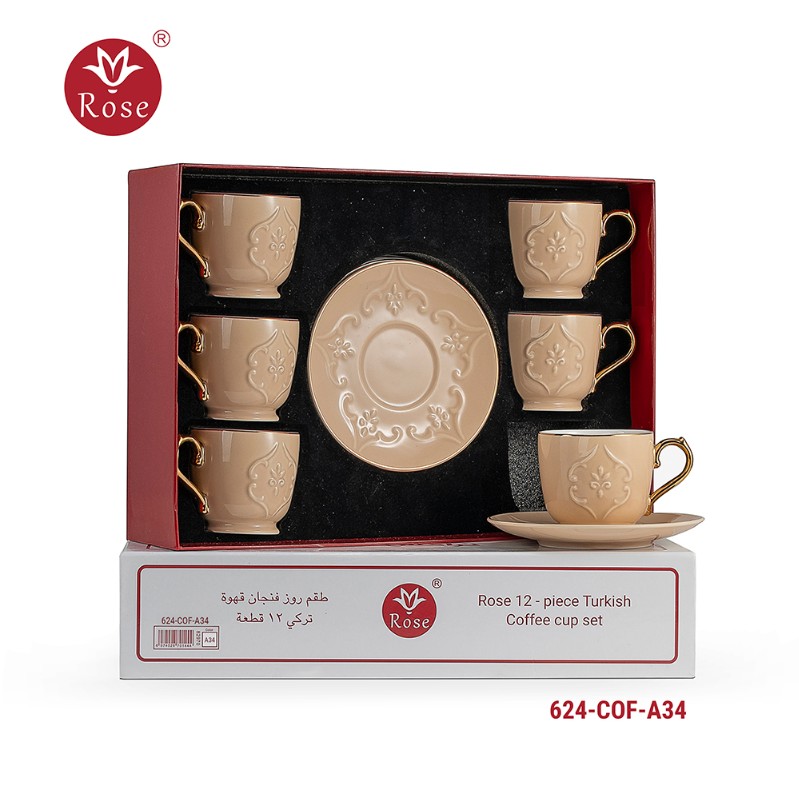 • طقم استكانة شاي 12 قطعة "6 استكانات + 6 صحون"