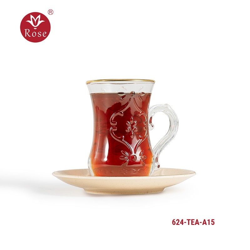 • طقم استكانة شاي 12 قطعة "6 استكانات + 6 صحون"