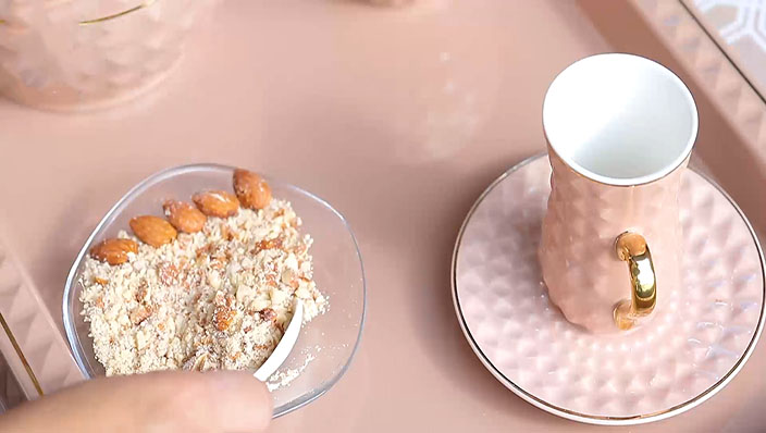- Add the chopped almonds to the cup just before serving.
